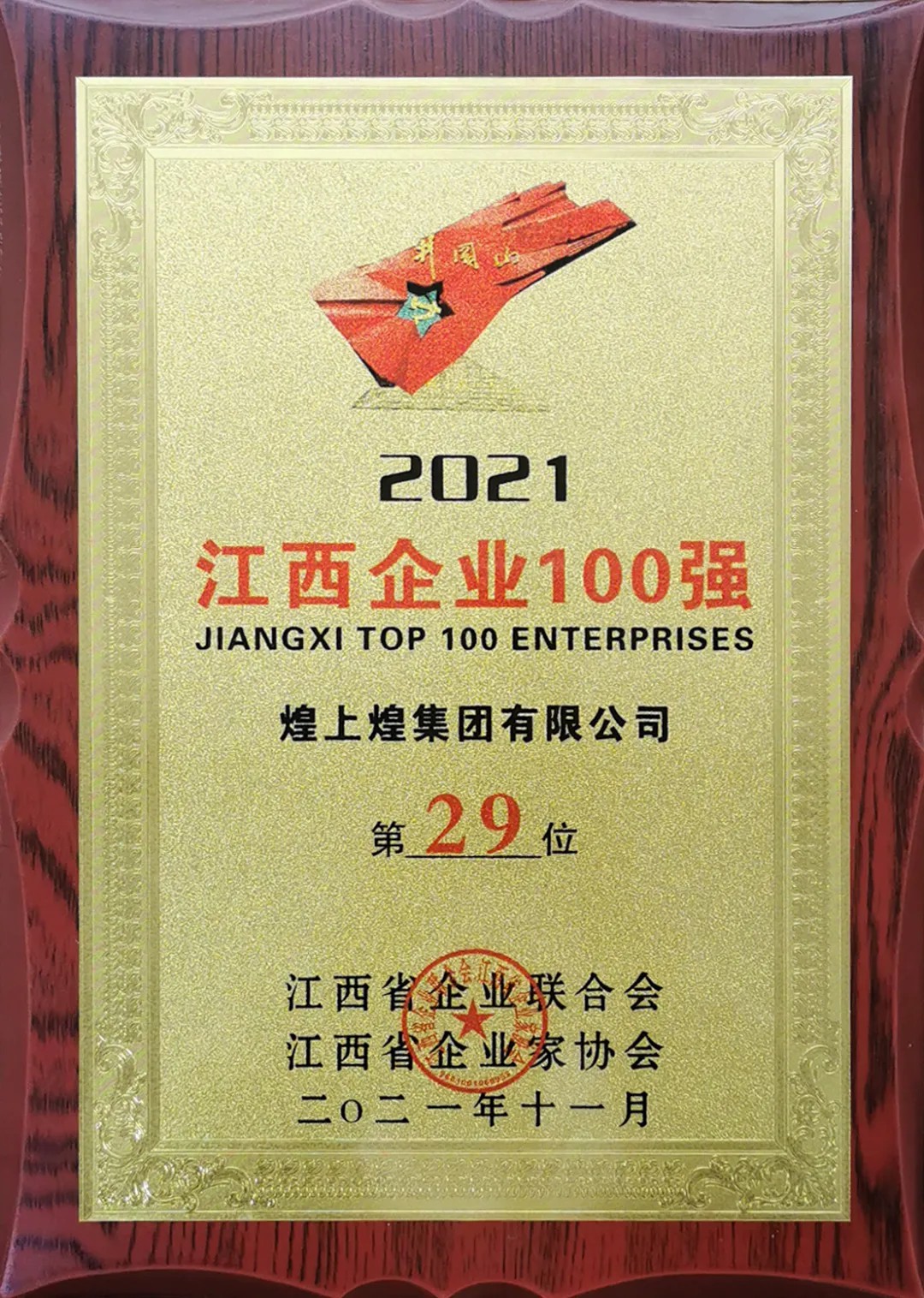 12月15日,江西省企業(yè)聯(lián)合會(huì)、江西省企業(yè)家協(xié)會(huì)在南昌舉辦2021江西企業(yè)100強(qiáng)新聞發(fā)布會(huì)。會(huì)上發(fā)布了江西100強(qiáng)榜單,煌上煌集團(tuán)有限公司榮登榜單第29位。