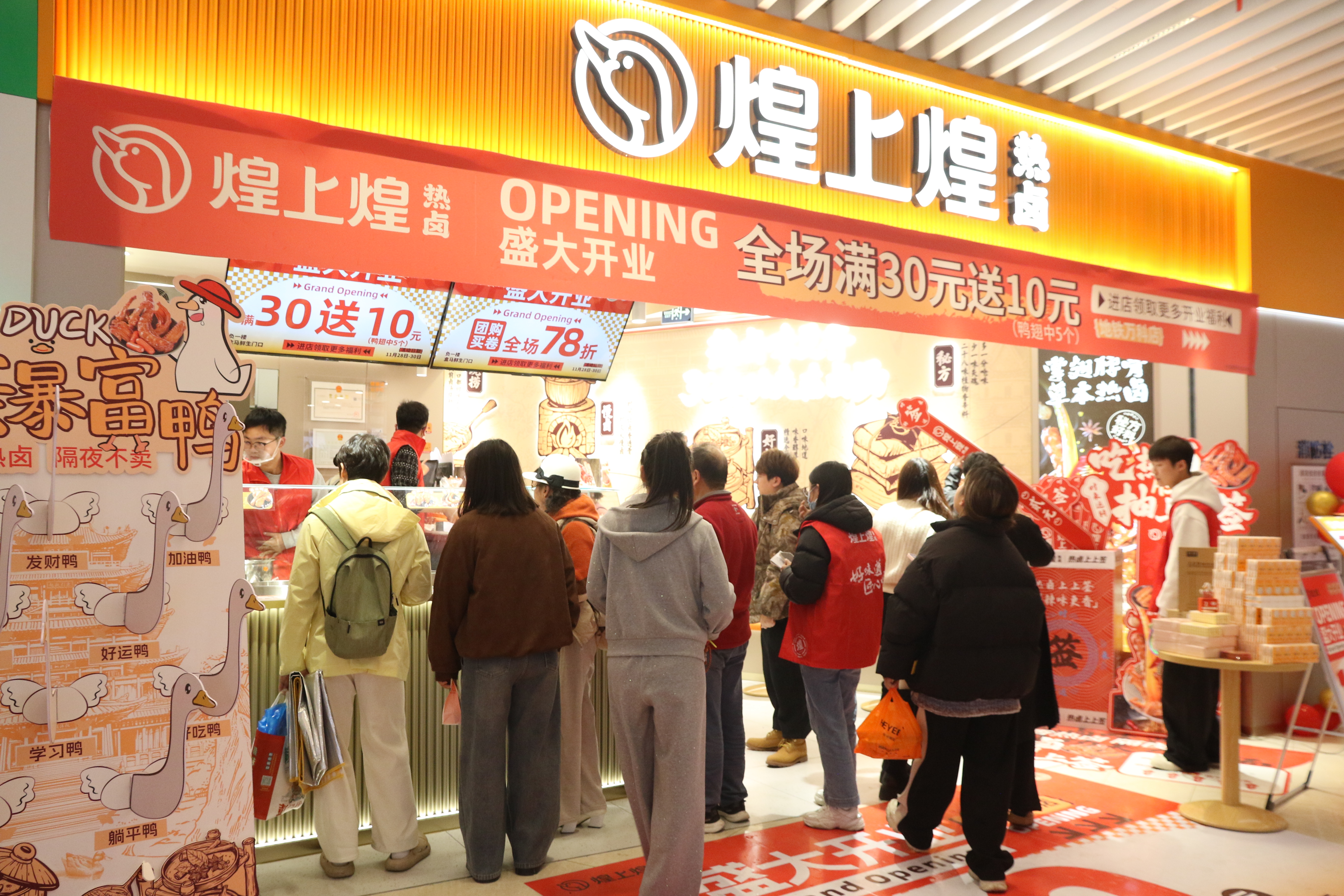 為適應(yīng)快節(jié)奏的都市生活,煌上煌熱鹵店聚焦“便捷與品質(zhì)并存”,不僅優(yōu)化了門(mén)店即買(mǎi)即走的消費(fèi)模式,還創(chuàng)新推出“熱鹵套餐”“鹵汁拌粉”“手撕醬鴨炒飯”等組合,打通午餐、晚餐、夜宵全時(shí)段消費(fèi)場(chǎng)景。門(mén)店設(shè)計(jì)同步升級(jí),以明檔廚房、國(guó)潮視覺(jué)元素營(yíng)造沉浸式用餐氛圍,讓顧客在享受美食的同時(shí),感受傳統(tǒng)與時(shí)尚交融的品牌文化。